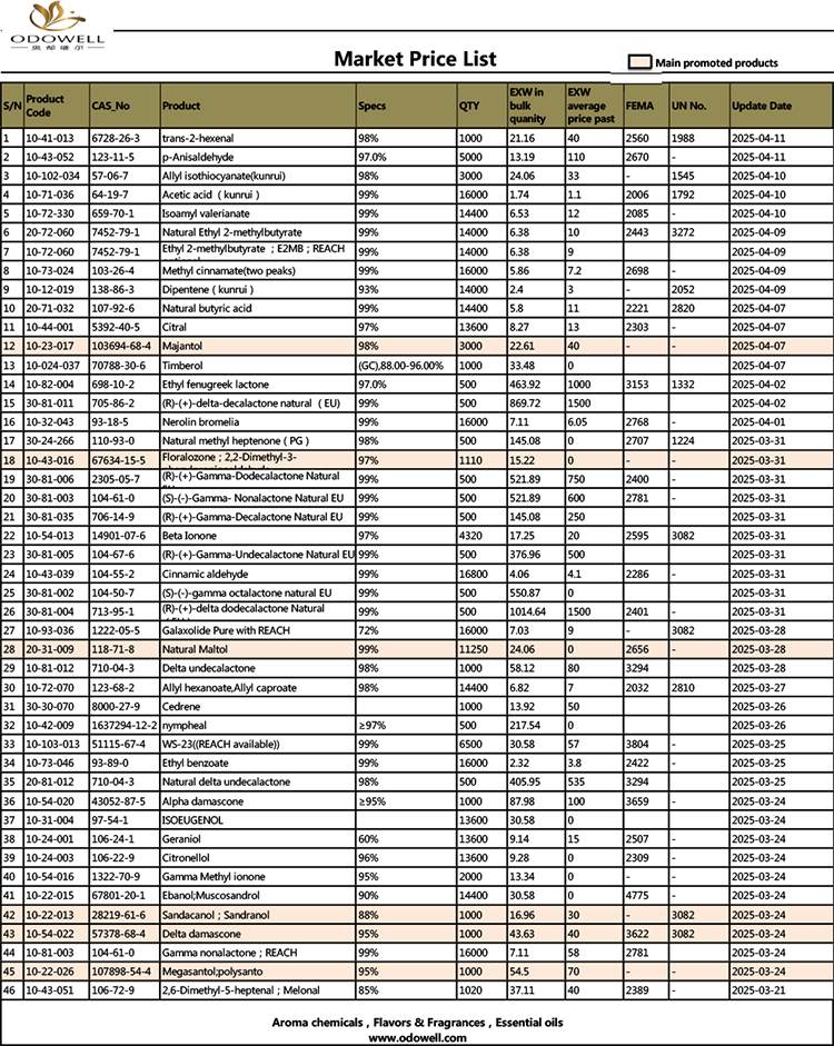 لیست قیمت بازار Odowell-Market-2025.3.21-2025.04.11 به روز شده توسط تاریخ