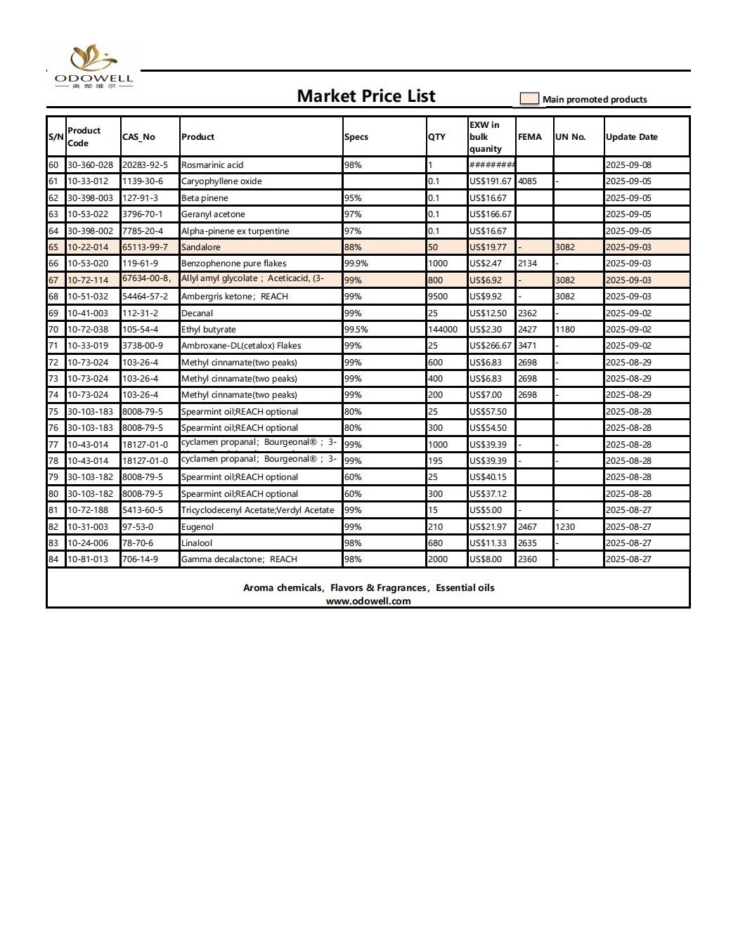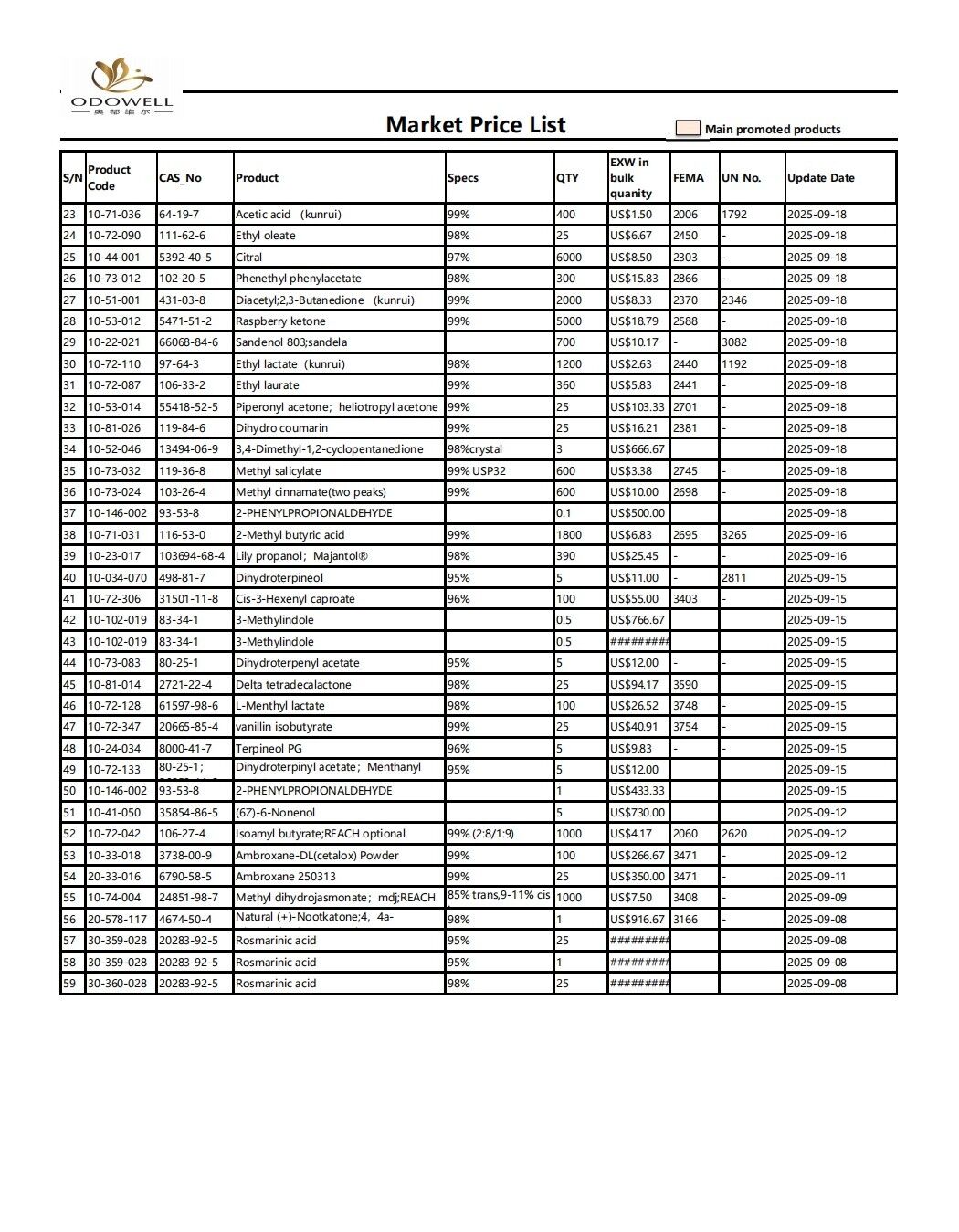 لیست قیمت بازار Odowell-2025.8.27-2025.09.29