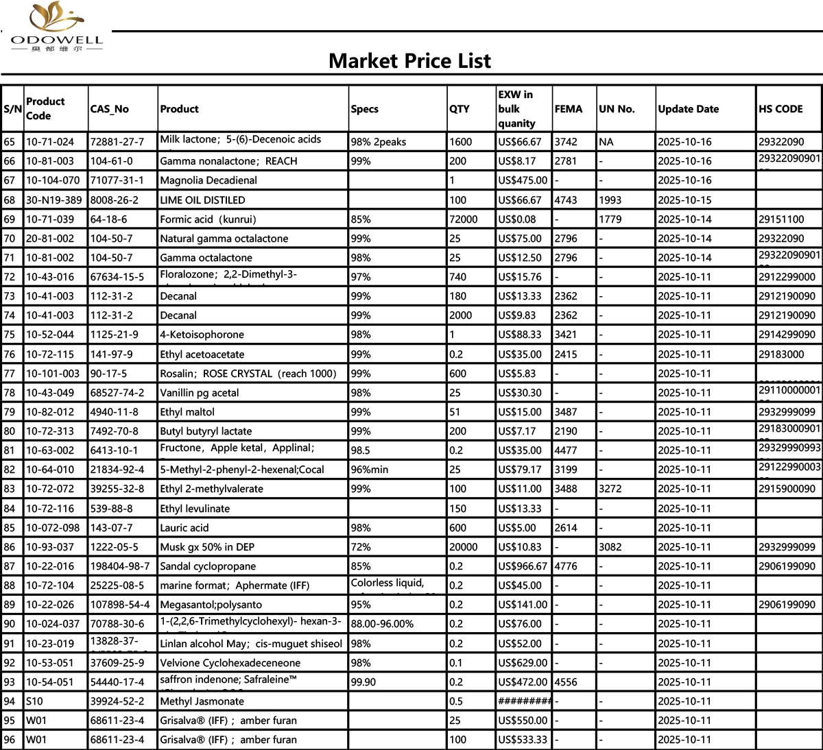 گاما Undecalactone طبیعی اتحادیه اروپا